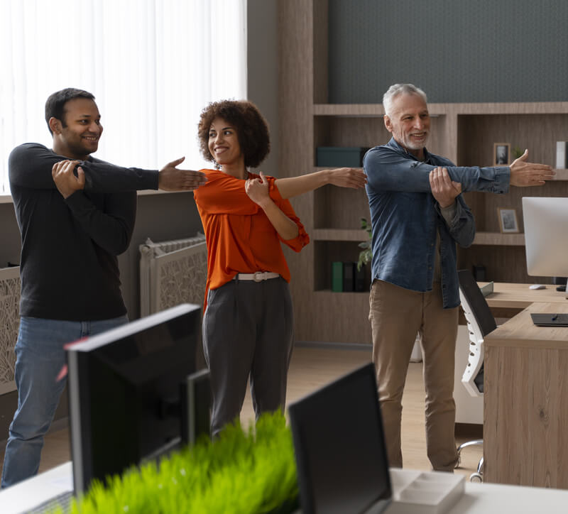 Je conçois des ateliers thématiques et ludiques, axés sur l’autonomie et la prévention. L’objectif n’est pas seulement de soulager, mais de former vos équipes à adopter de nouvelles habitudes durables face aux risques de leur poste de travail (sédentarité, postures répétitives, stress).